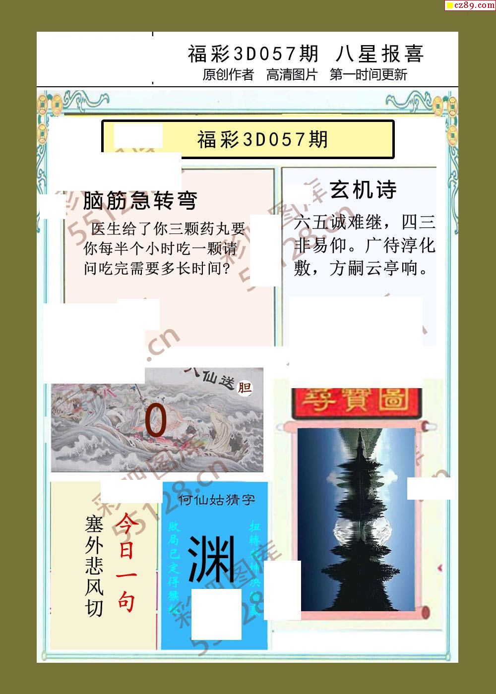 八星报喜26年057期福彩3d画谜